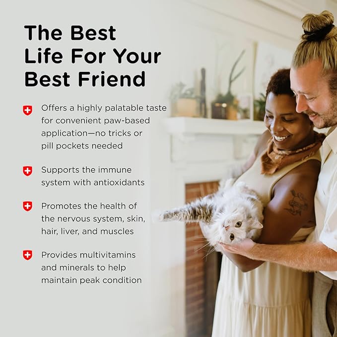 - DAILY SUPPORT: This veterinarian-formulated paw gel provides essential vitamin and mineral support to boost your cat’s immune health and overall well-being every day; Perfect for kittens, senior cats, and indoor cats to help them feel their best