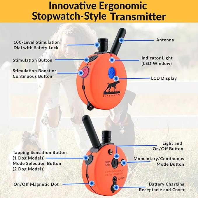 Educator E-Collar Humane Dog Training Collar with Remote, 100 Safe Tapping Stimulation Levels, Night Light, Waterproof, Rechargeable, 1 Mile 1 Large Dog, Orange