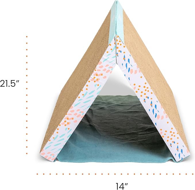 - Interactive Cat Tunnel: Tent-shaped cat tunnel that folds up for quick and easy storage; for indoor play and a great option for solitary playtime or interactive cat play
