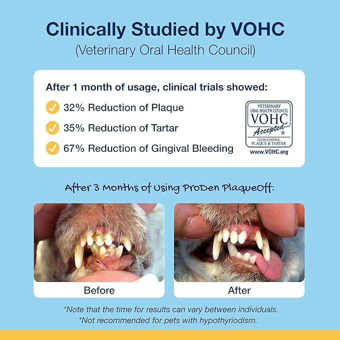 • Dog Dental Care: ProDen PlaqueOff is a natural seaweed shown to improve oral health by helping reduce plaque and tartar buildup, improve breath, and support ideal dental hygiene.