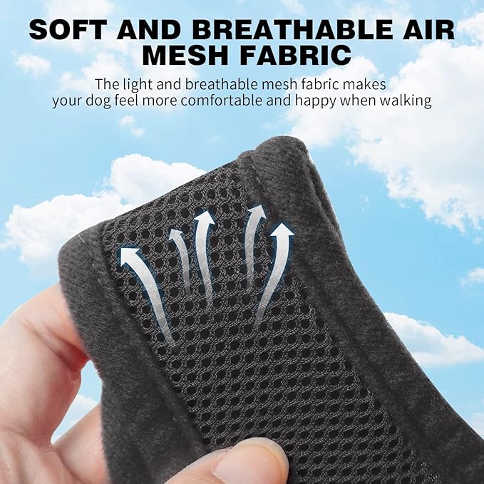 - ๐ถ[DURABLE & COMFORTABLE]: The dog harness vest are made of breathable air mesh fabric and padded with soft material to protect your pet's skin, which is durable and cozy. Our dog vest is suitable for any season wearing.