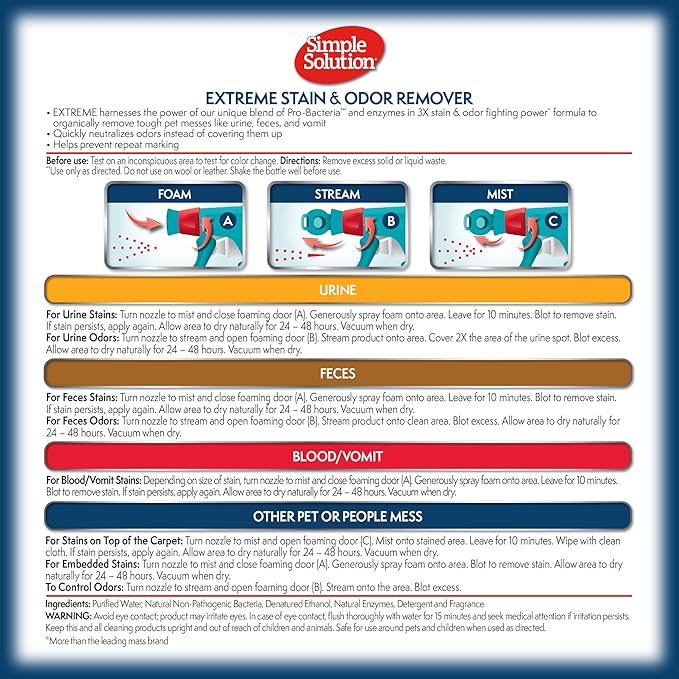 - SIMPLE SOLUTION: it’s just that…a simple solution to all of your pets’ messes – wherever they may be; We offer easy-to-use, no-hassle products that will effectively help you keep your home clean and sparkling; In short - pet parenting made easy