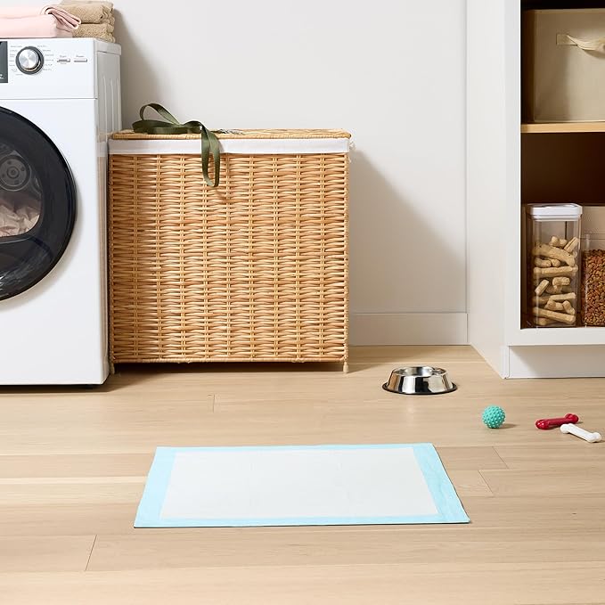Amazon Basics Dog and Puppy Pee Pads with 5-Layer Leak-Proof Design and Quick-Dry Surface for Potty Training, Standard Absorbency, X-Large, 28 x 34 Inch - Pack of 60, Blue & White