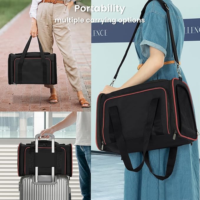 - 【MULTIPLE WAYS TO CARRY 】Self-lock zipper to prevent your pets from escaping. A strap on one side can be slid around the extendable handle of rolling luggage. Two flexible handles to hold with your hands. Additionally, it provides a longer, detachable strap to hang on the shoulders and has a side pocket for storage.
