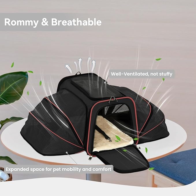 Petsfit Expandable Cat Carrier Large for 2 Cats, Soft-Sided Pet Carrier, 19x12x12 Inches, 2 Extensions for Adding Comfort, Fit for Pet Up to 15 Lbs, Black