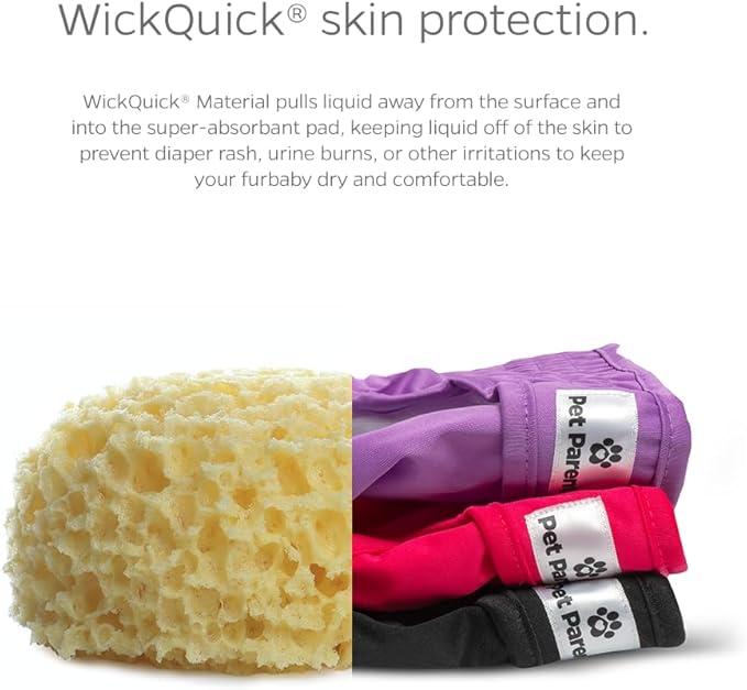 - HIGHLY ABSORBENT DOGGIE DIAPERS: Because we know your Great Dane 'goes' more than your Chihuahua, the diaper pad that is sewn into our dog diapers female increases with the size, because bigger dogs = more liquids. WickQuick material wicks liquid from the surface and into the dog period diapers, keeping your furbaby dry and reducing urine burn or irritation. Our diapers also have a waterproof outer layer to prevent leaks and damage to rugs, carpets, upholstered chairs and sofas.