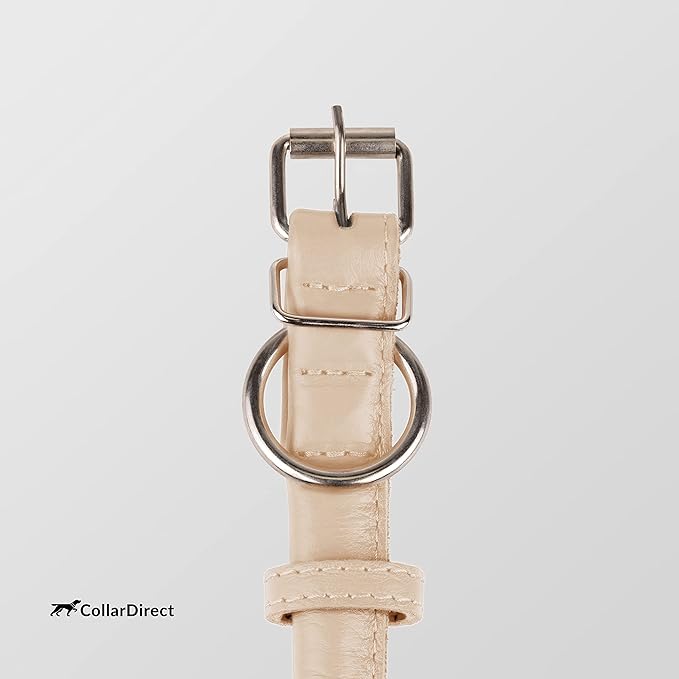 CollarDirect Rolled Leather Dog Collar, Soft Padded Round Puppy Collar, Handmade Genuine Leather Collar Dog Small Large Cat Collars 13 Colors (18-22 Inch, Beige Textured)