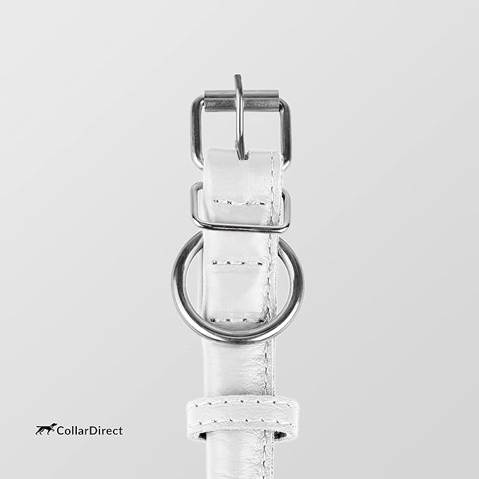 CollarDirect Rolled Leather Dog Collar, Soft Padded Round Puppy Collar, Handmade Genuine Leather Collar Dog Small Large Cat Collars 13 Colors (13-16 Inch, White Textured)