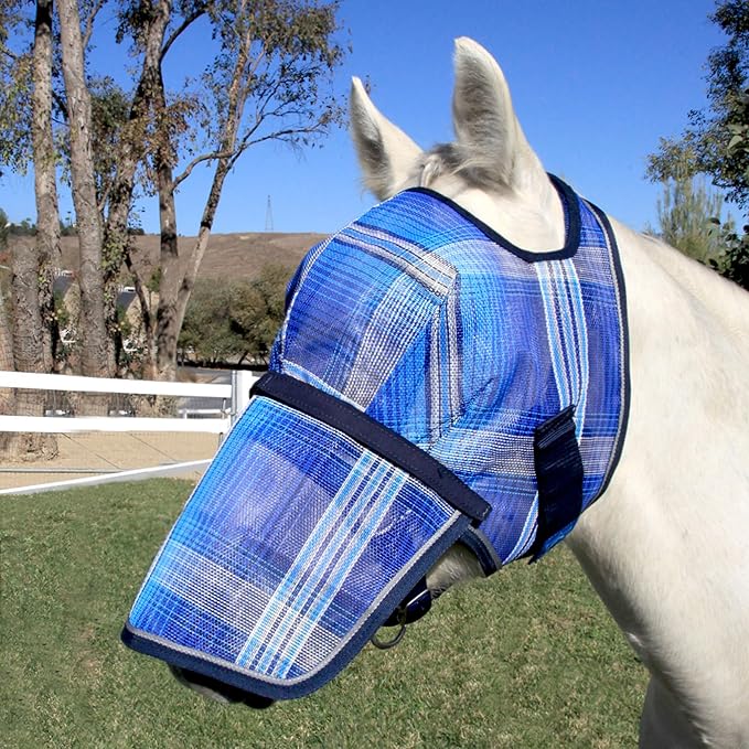 - REMOVABLE NOSE PIECE: Have a horse with a pink nose? If they hate sunblock, you can provide sun protection with the removable nose piece - and if you're using the mask outside of sunburn season, it's a piece of cake to remove!