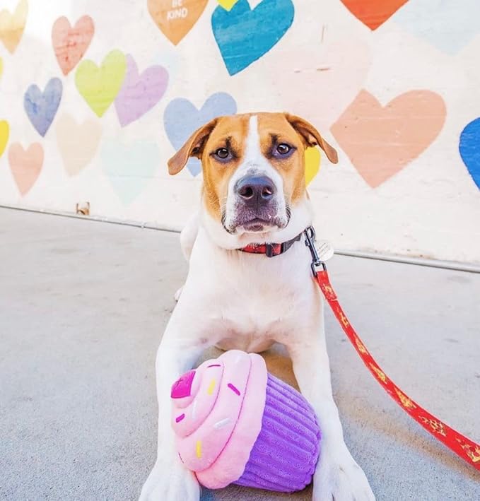 - ENGAGING NOISEMAKER: Each Birthday Cupcake Toy includes two round squeakers. This plush toy delivers noisy fun your dog will love, keeping tails wagging and playtime a blast