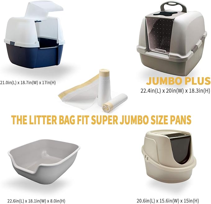 - Jubo Liners: Recognizing the critical role pets play in people's families, we are provide jumbo bags(45 inch*18 inch), fits most litter boxes. Total of 20 liners