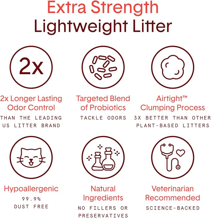 - GUARANTEED ODOR CONTROL: 35-day odor control guarantee (2x longer than leading competitors), Boxie Extra Strength stops odors before they start using a proprietary blend of probiotics. Eliminates ammonia odor.