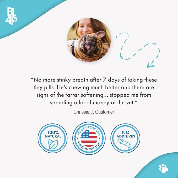 - No Fuss, Easy to Give: We know that getting dogs to take regular pills can be a hassle. That's why our small, odorless, and tasteless pills are made to be easily hidden in treats, a pill pocket, added to kibble, or crushed into powder and used as a bad dog breath water additive, making administration stress-free for both you and your dog.