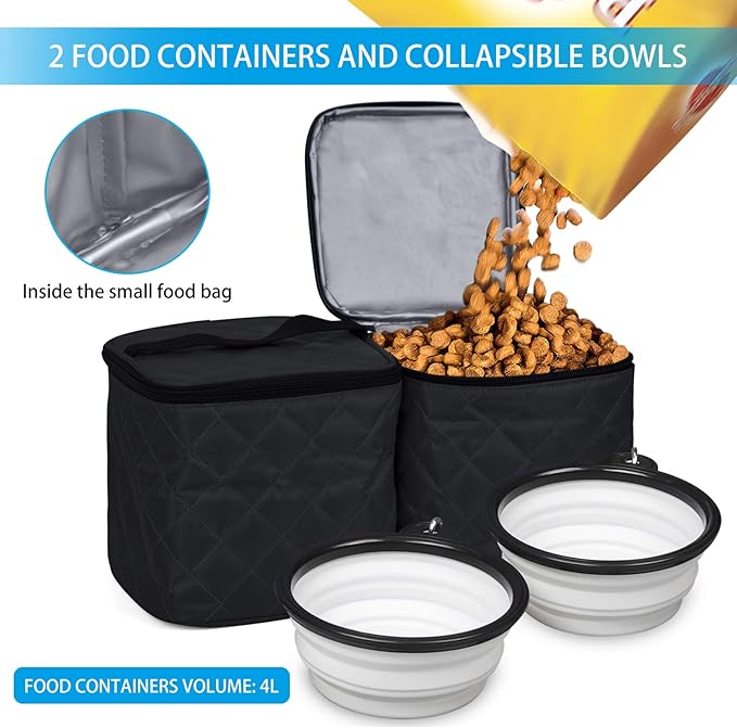 - HIGH QUALITY-The pet travel set is made of heavy-duty polyester material, filled with EPE foam,excellent tear resistance and wear resistance make it durable,has excellent waterproof performance,and excellent practicality meets your needs.