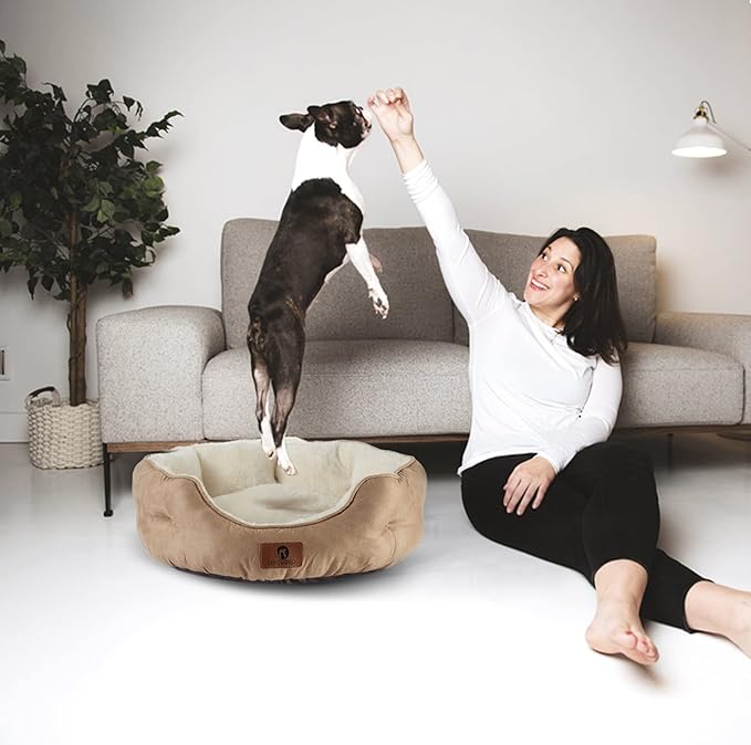 Asvin Medium Dog Bed for Medium Dogs, Cat Beds for Indoor Cats, Pet Bed for Puppy and Kitty, Extra Soft & Machine Washable with Anti-Slip & Water-Resistant Oxford Bottom, Light Brown, 25 inches