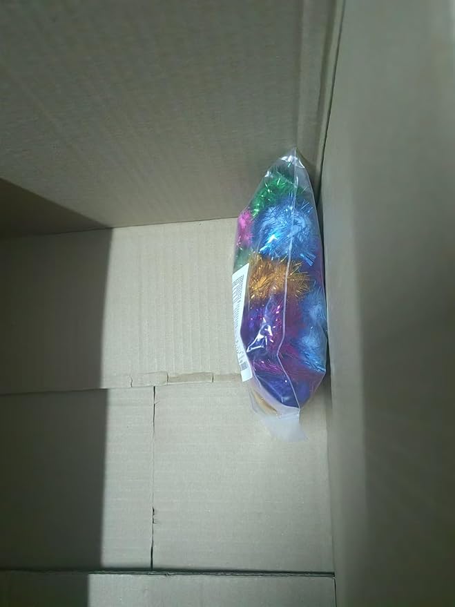 - 【20Pcs Sparkle Cat Toy Balls in Pack】You will receive 20pcs Multi-color fluffy cat balls toys for indoor cats. Material in polypropylene fiber, non-toxic, durable. Size: about 2 inches/5 cm with shiny metal wire; about 1.5 inches/3.8cm without shiny metal wire. Each weighs 0.11oz. Colors come randomly (6-8 colors).