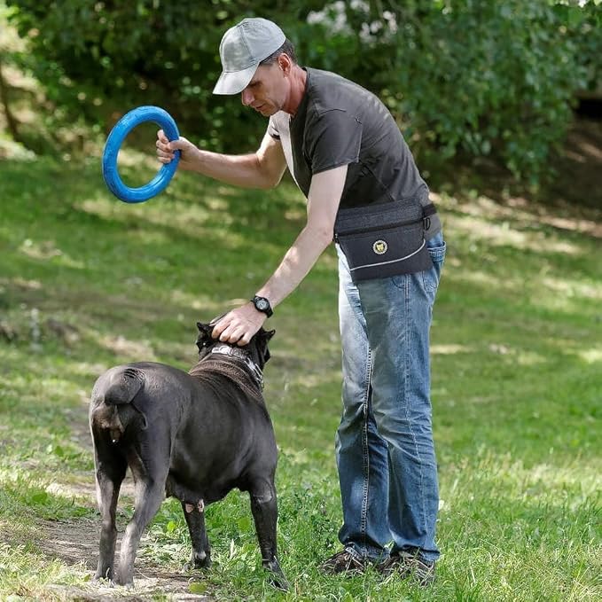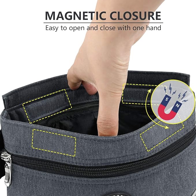 Viklluyr Dog Treat Pouch with Magnetic Closure, 2 Zip Pockets, Removable Inner Pocket, Padded Shoulder Strap, Perfect Food Bag for Agility Training - Including Carabiner