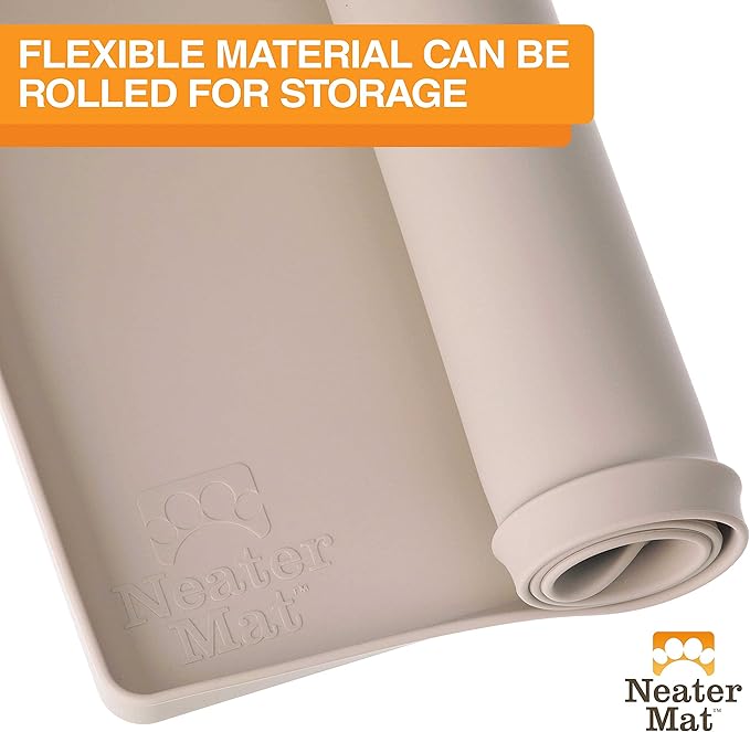 Neater Pet Brands Neater Mat Pet Mats for Food and Water, Cat & Dog Bowl Mat Waterproof Silicone, Feeding Tray, Dog Food Mats for Floors, Placemat w/Raised Edge for Under Bowls, 24" x 16", Cappuccino