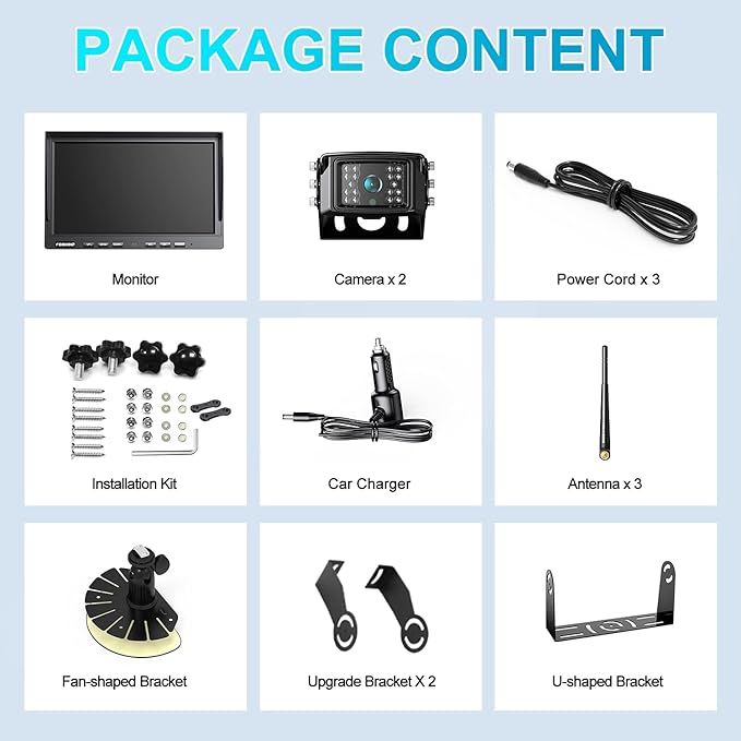 - 【Please Note】Wireless means that the system transmits the footage captured by the camera to the screen through a wireless signal instead of using a cable. But the cameras and monitor still need to be connected to a power source via power cord to get power to work properly. There is no cable between the cameras and the monitor in a wireless system than in a wired system, so you don't need to run cables on your vehicle, which is more convenient.