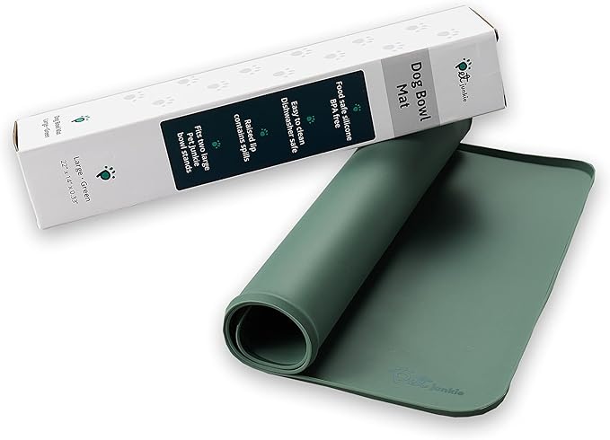 Silicone Dog Mat for Water Bowl and Food Dish, Pet Mat for Floors, Waterproof Dog Food Tray (Green)