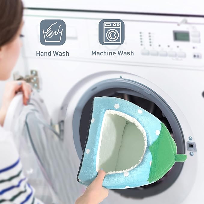 - 【Warm & Cozy】 The small animal bed or hideout comes with a removable pee pad inside, and the non-slip bottom ensures it stays in place. With the super soft plush fabrics, your little furry friends will feel cozy and warm inside their little house. Suitable for small animals such as Rats, Chinchillas, Ferrets, Guinea Pigs, and Dwarf Rabbits etc.
