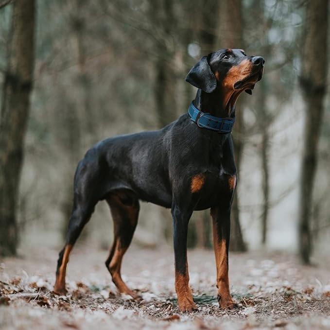 Fida Heavy Duty Dog Collar 1.5” Width, Ultra Soft Neoprene Padded, Adjustable Reflective Nylon Pet Collar with Two Metal Pin Belt Buckle for Extra-Large Breeds (XL, Blue)
