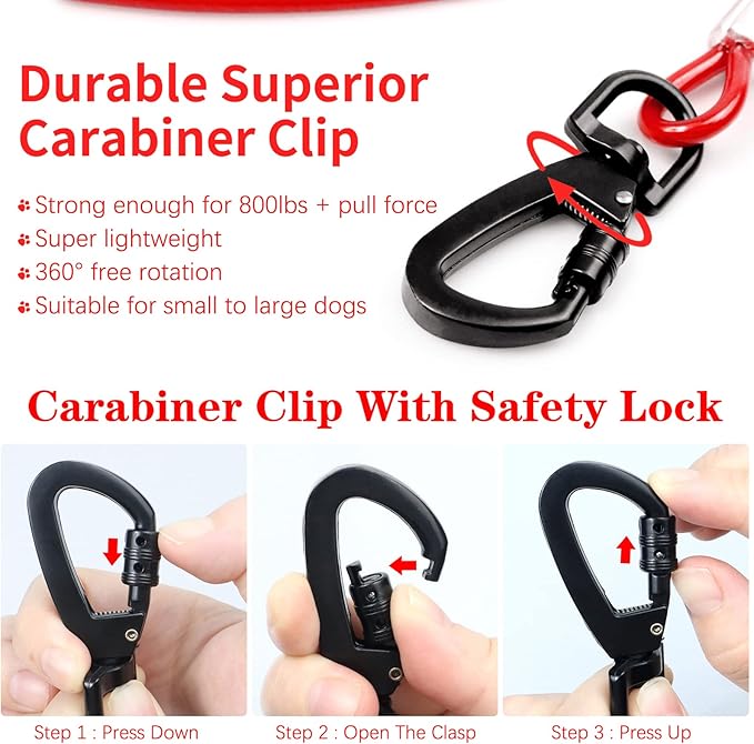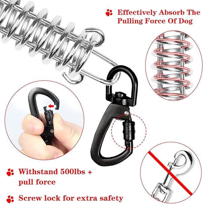 - High Quality Buckle: Heavy duty 360° swivel clip is designed with high grade steel which is rust-proof and wear-resistant, easy to operation, ultra-light but super strong, plus a flexible spiral lock, your dog could move at will in the yard. Free your hands and keep pets’ safe.