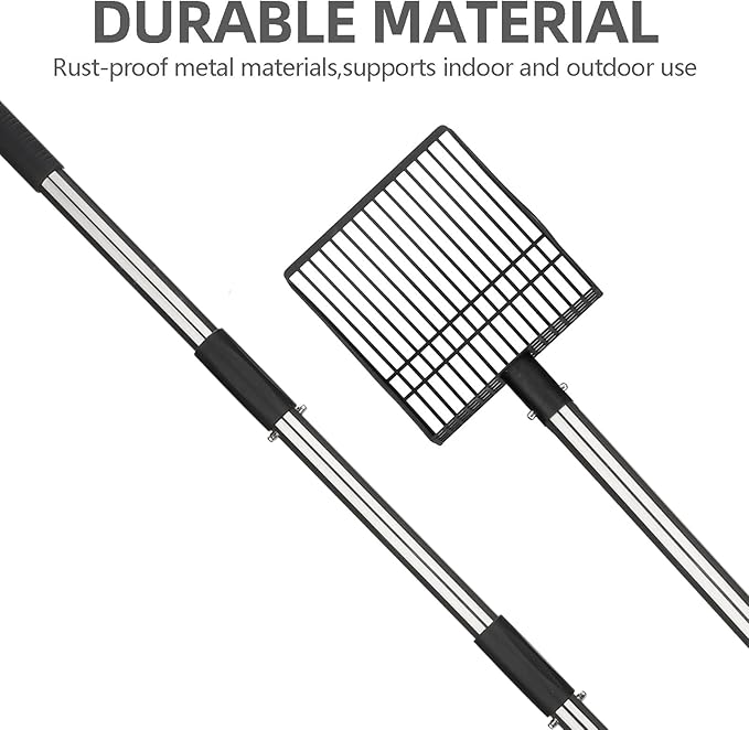 - [3 Levels Length Adjustable]: The handle length can be adjusted from 19.9 inches to 39.8 inches. It can be assembled and disassembled with the press of a button, and the holding handle works very well. Three kinds of lengths can be adjusted to meet the needs of people of different heights. From then on, you don’t need to bend down to serve your cat