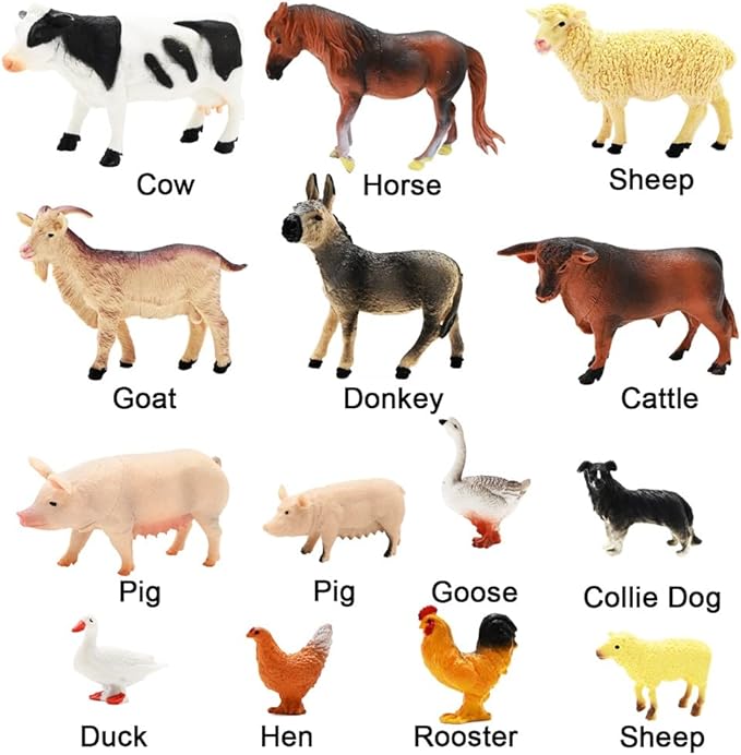 - ๐ฏ LEARNING EDUCATIONAL TOY: They're also the great pretend play props, enhancing animals vocabulary, language skills, creative thinking and active cognitive learning through imaginative play. Realistic detailed farm animals are easy for toddler to distinguish, it's the good learning toys. Also this farm toys can also make away your kids from electronics which can protect their eyesight.