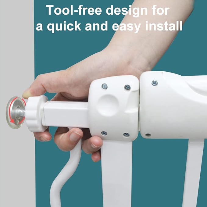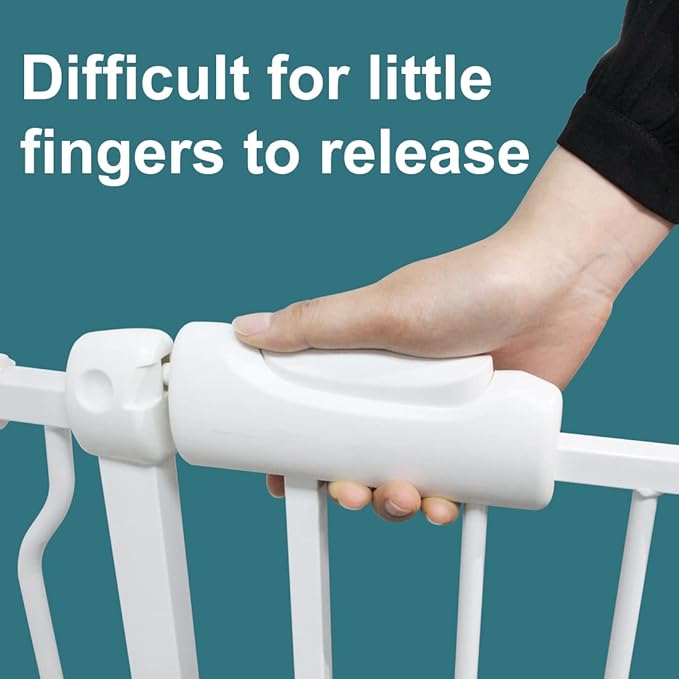 - 【BABY GATE FOR DOORWAY】 - This gate is made from durable steel which can last longer than wood.And it is damp-proof. It has child safety lock that is perfect for 6-24 months toddlers. Kids and dogs are curious about the environment, like refrigerator, drawers, bookshelves, ladders, stairs, kitchen, outdoor etc. So you need a baby gate or dog gate to keep them away from danger .