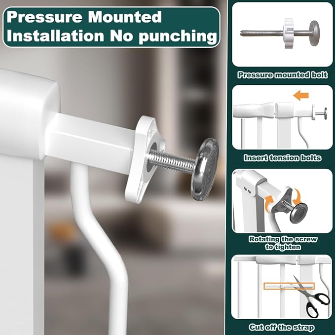 - 【EASY TO INSTALL & WALL FRIENDLY】 You can use Pressure mount installation,it's convenient and strong, and it can protect your wall .It's easy to remove,you can remove it anytime when it is not in use. Reuse is certainly possible when you move to a new place.Note:if you want to use it on the top of stairs,please use hardware mounted installation.