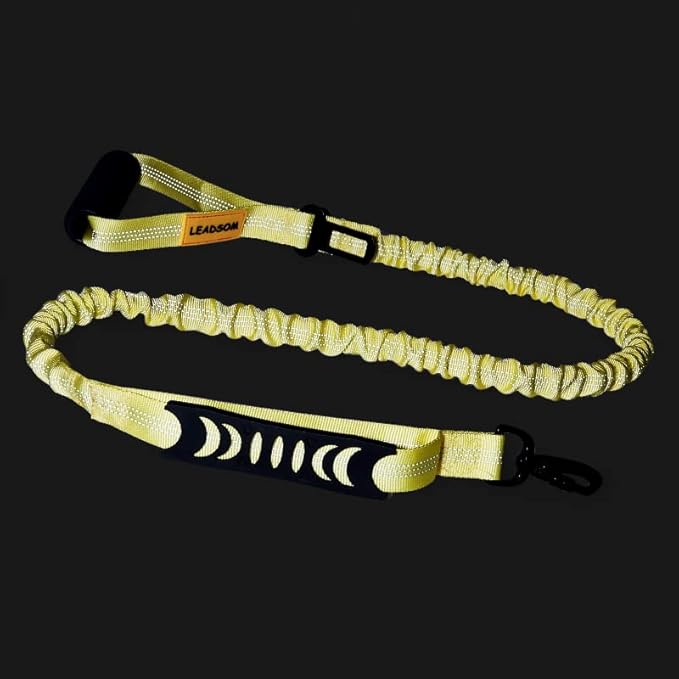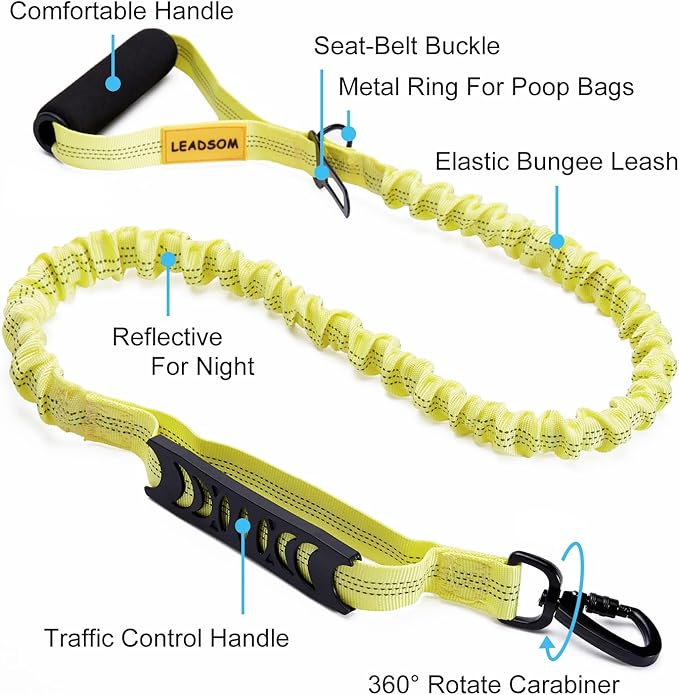 6FT Highly Reflective Heavy Duty Elastic Bungee Medium and Large Dog Leash Shock Absorbing with Comfortable Padded Handle and Traffic Handle Suitable for Training Yellow