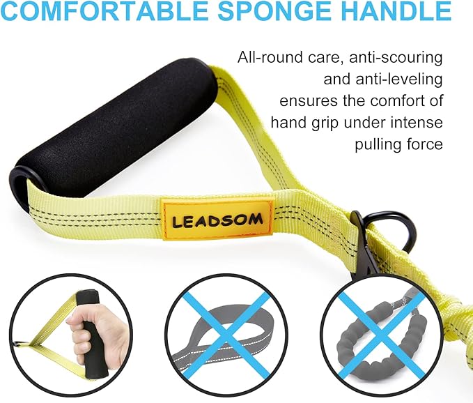 - 【EASY TO CONTROL】-Use the padded handle when walking, running, or jogging. Use the traffic handle on busy sidewalks, bike lanes, and crowded areas that require close control of your dogs. The traffic handle can also be used as a short training leash suitable for dog training.