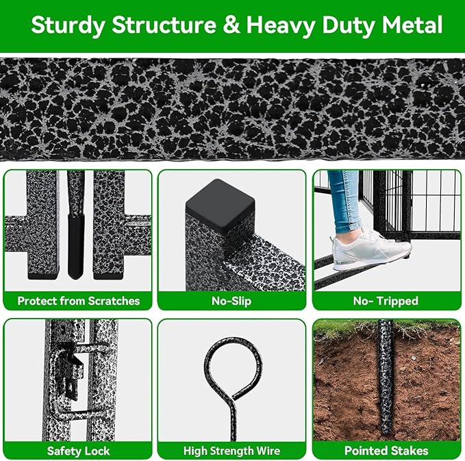 - 【Anti-Rust Coatings Material】Kfvigoho puppy playpen made of heavy-duty metal, sturdy and durable, steel wire smooth and solid, pet dogs couldn't damage or chew it, anti-corrosion coatings and rust-proof process helps panels works well outdoor and extend its life, the indoor and outdoor dog pen great for people with dogs