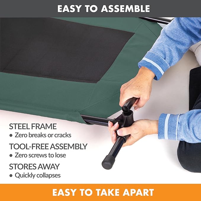 - COLLAPSIBLE: Collapsible dog cot is easy to assemble and disassemble, no tools necessary making this portable bed great for use during travel, camping, picnicking, place board training and more