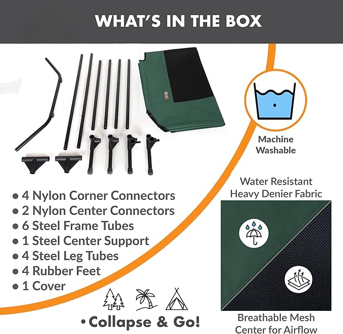 K&H Pet Products Outdoor Elevated Dog Cot, Breathable Cooling Elevated Cot Hammock Pet Bed for XL Dogs, Washable Mesh Cover, Raised Metal Frame, Collapsible, Portable - Extra-Large 50 X 32in Green