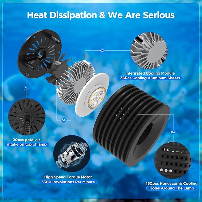 - HEAT DISSIPATION: Quality aluminum cold forging heat sink, efficient cooling system, perfectly light up your coral reef tank