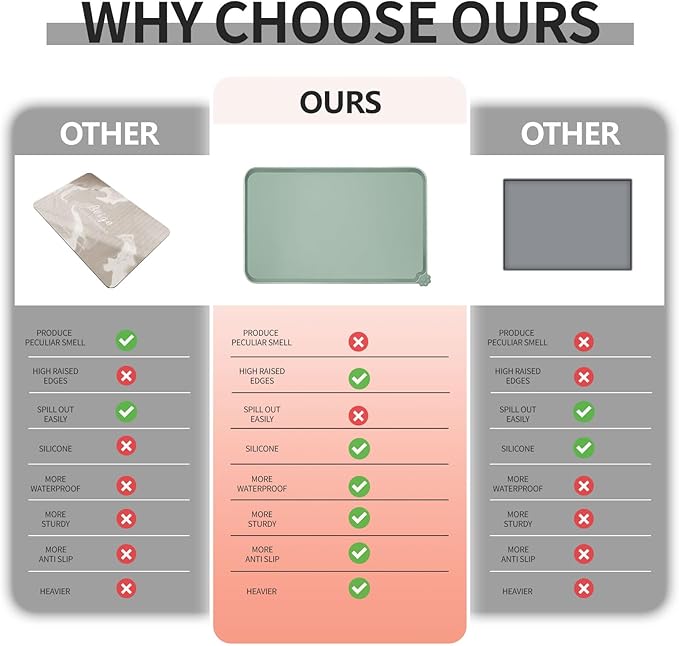- Anti-slip design: our non-slip pet feeding mat ensures stability for your pet's bowl, preventing any water stains or spills on the floor. Enjoy peace of mind when feeding your pet, knowing that their food stays in place