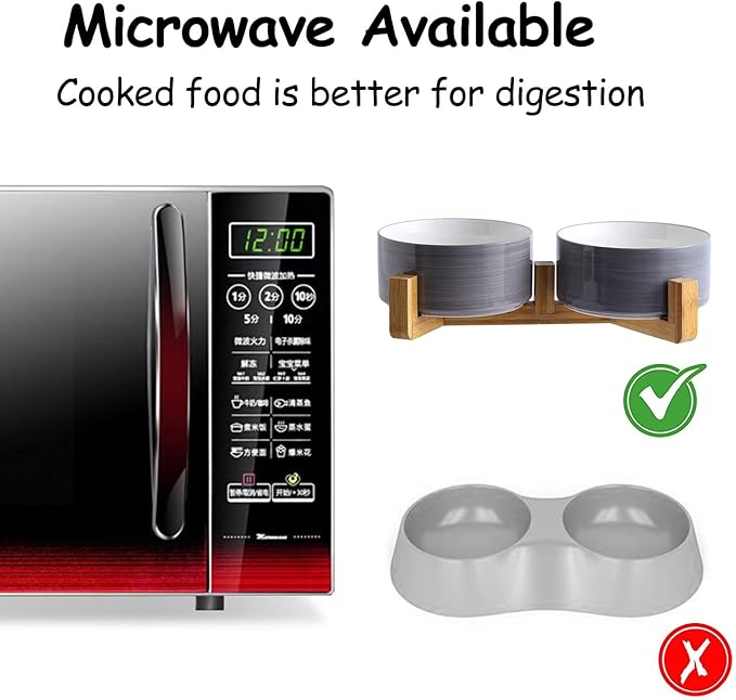 - DISHWASHER MICROWAVE SAFE: - These Black medium size ceramic dog bowl set are as practical as they are cute. modern design, you can place your ceramic cat dog bowls in your dishwasher with confidence. Plus, for dogs and cats with special dietary needs, this dog cat bowl is microwave safe, so you can heat your pet's food.