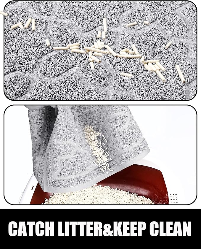 - KEEP FLOOR CLEAN : The litter mat(24 x 20 Inches) is suitable for cat litter boxes, bins, caps, and self-cleaning bins. Covering the largest area under the litter boxes, which means less sweeping around the cat boxes, prevent the cat's urine and excretions from everywhere effectively, room and floor no longer messy