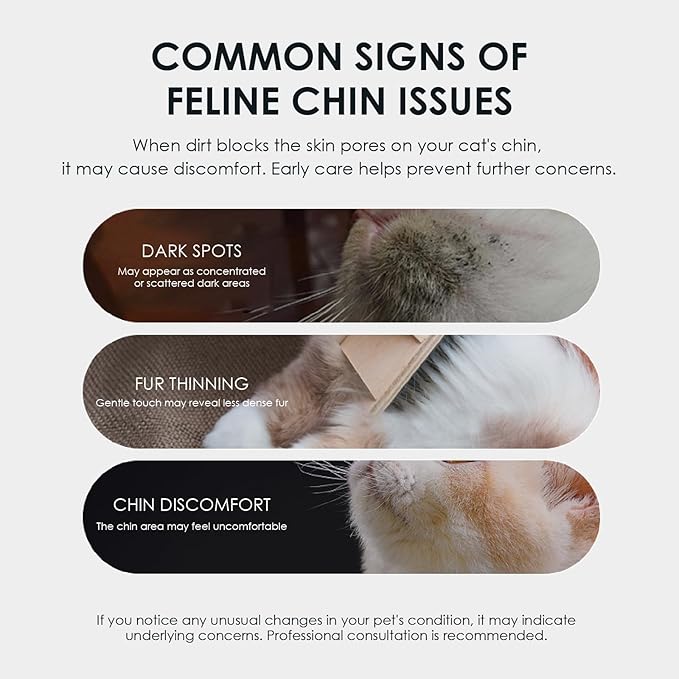 - 🐈DAILY PREVENTION & POST-MEAL CLEANSE: Ideal after feeding (especially wet food) to clear trapped oils before they oxidize into blackheads. Quick no-rinse convenience—massage 5–10 seconds, then wipe off thoroughly with soft pad/towel to keep the chin matte & fresh.