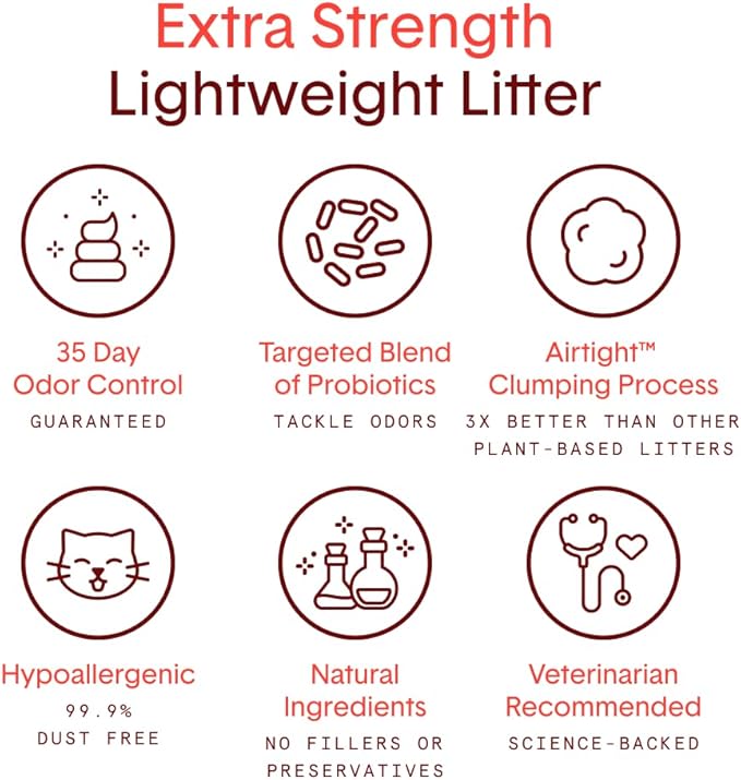 - GUARANTEED ODOR CONTROL: 35-day odor control guarantee (2x longer than leading competitors), Boxie Extra Strength stops odors before they start using a proprietary blend of probiotics. Eliminates ammonia odor.