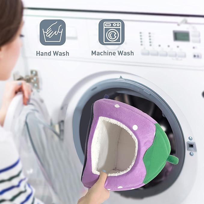 - 【Warm & Cozy】 The small animal bed or hideout comes with a removable pee pad inside, and the non-slip bottom ensures it stays in place. With the super soft plush fabrics, your little furry friends will feel cozy and warm inside their little house. Suitable for small animals such as Rats, Chinchillas, Ferrets, Guinea Pigs, and Dwarf Rabbits etc.