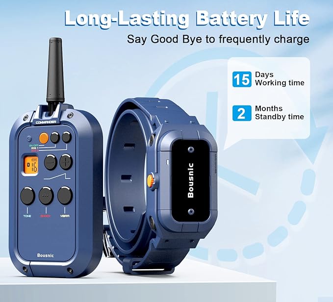 - Fits for Dogs (15-140lbs): The Bousnic electronic dog collar Fits neck sizes from 8-24 inches. The TPU collar material makes it comfortable for dogs 15-140lbs.