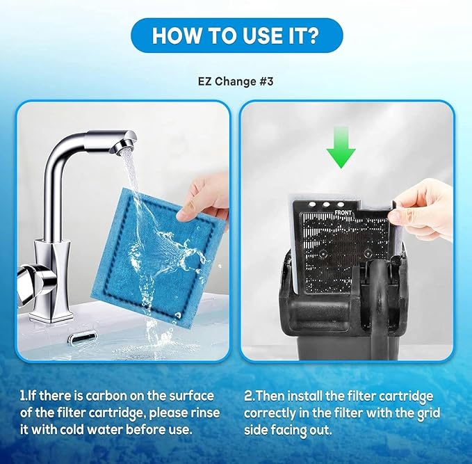 - 【Ready to use】Our aquarium filter cartridge is already set up, it just needs to be installed correctly on the power filter and it is ready for quick filtration. If there is carbon on the filter cotton, please clean it before use.