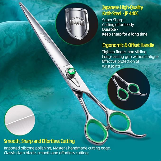 - ๐[Great Gift Idea] The straight pet grooming scissors are ideal for pet hospital, pet salon, and home to use on shih tzu, teddy, poodle,cat and so on. The dog cutting scissors for grooming is also definitely the perfect gift for relatives and friends, especially for dog or cat lovers. Personalized custom signature service to make your gift unique. FOGOSP dog grooming shears are the best gifts for St.Patrick's Day, Birthday, Thanksgiving, Christmas, New Year, and other major days.