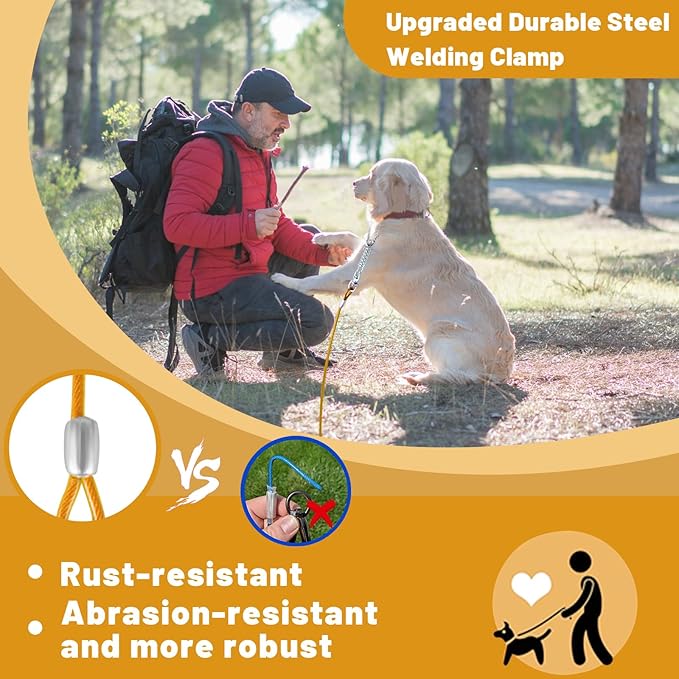 - DURABLE MATERIAL:The steel cable is very strong, wrapped in a soft PVC protection tube, durable, rust-proof, high-strength anti-bite, not easy to be torn by the dog, and can be used for a longer period of time.