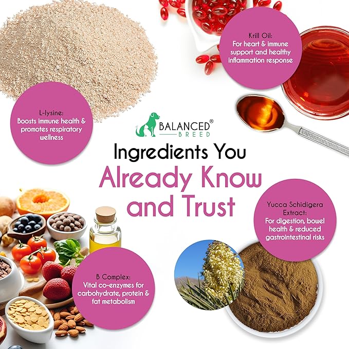 Balanced Breed L-Lysine Cats Immune Support Soft Chews Made in USA Vet-Pharmacist Approved Seasonal Allergy Relief Cat Vitamins Indoor Cats Supplements Krill Oil Asthma Relief Cat Lysine Treats NonGMO