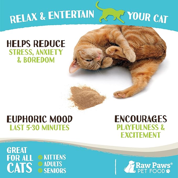 - BOOST FELINE ACTIVITY: Sniffing silvervine catnip for cats jumpstarts playful activity while ingesting it mellows and de-stresses. Maintain healthy weight, reduce boredom and even help tummy troubles with our matatabi powder!