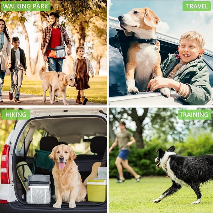 - Multi-Function Treat Pouches for Pet Training β The dog treat pouch can easily store kibble, toys, treats, poop bag and your personal belongings, such as phone, keys, wallet and so on. The D-rings can be used to hang dog clicker training kit or dog cups. The dog treat pouch keeps your hands free. Perfect for dog training at the park!
